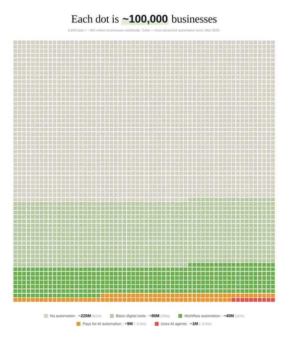 310 millions d'entreprises n'ont aucune automation. 50 millions en ont juste un bout. Environ 1 million de personnes savent vraiment livrer ce service à un niveau correct. Les chiffres viennent de Ronin (@DeRonin_), CEO de CloseAI, dans une roadmap de plus de 10 000 mots pour devenir AI Automation Builder en 6 mois.